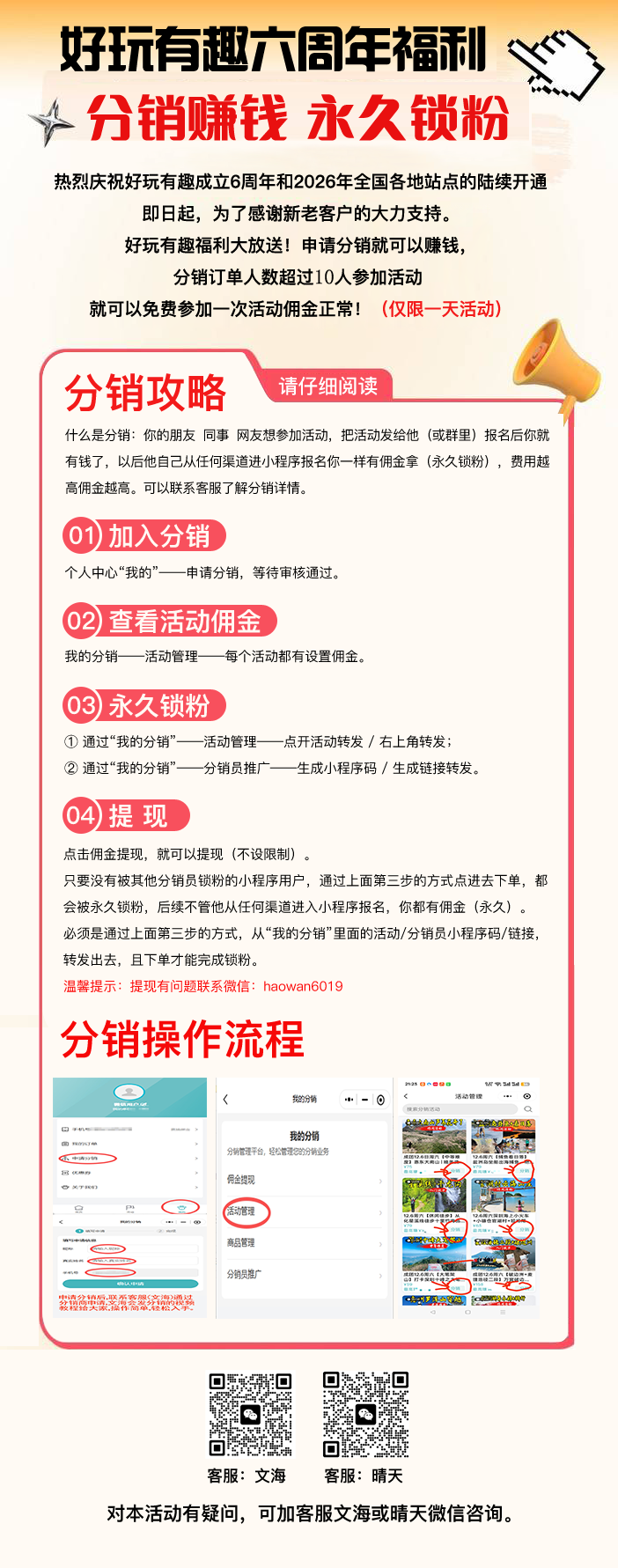 如遇不可控因素(如战争 封路 地方管控 ZF禁止前往....等),会另行通知,请关注活动群通知。