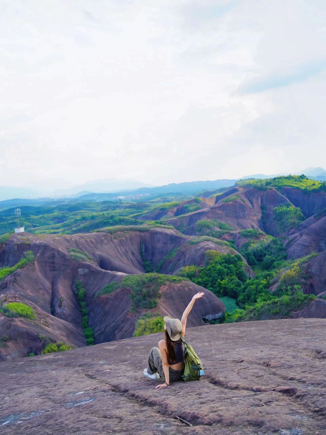 沿着峡谷一路向前,沿途的景观不断变幻,地势以山林为主,风景宜人。山、水、泉、洞、寨、崖、穿坦俱全,其最大的特点就是有一条公路犹如天路一般屹立在峡谷中间,美不胜收,且丹霞地貌周边有漂亮的水洼点缀,红岩绿水、险寨奇涧,生态自然,美得一塌糊涂。