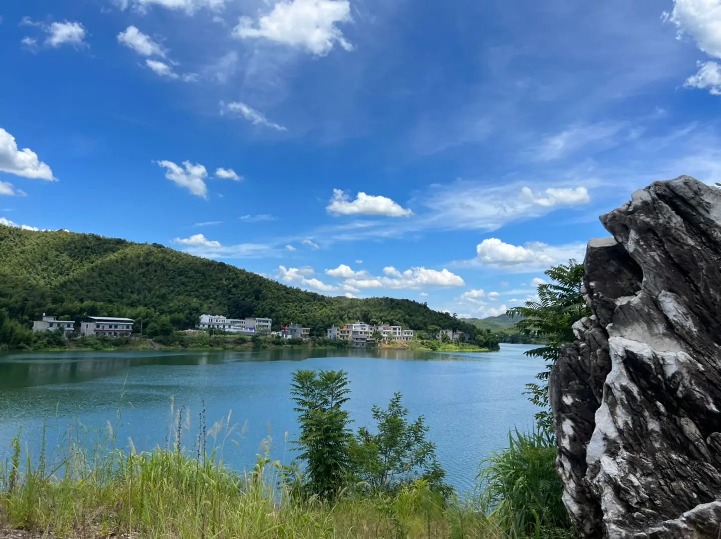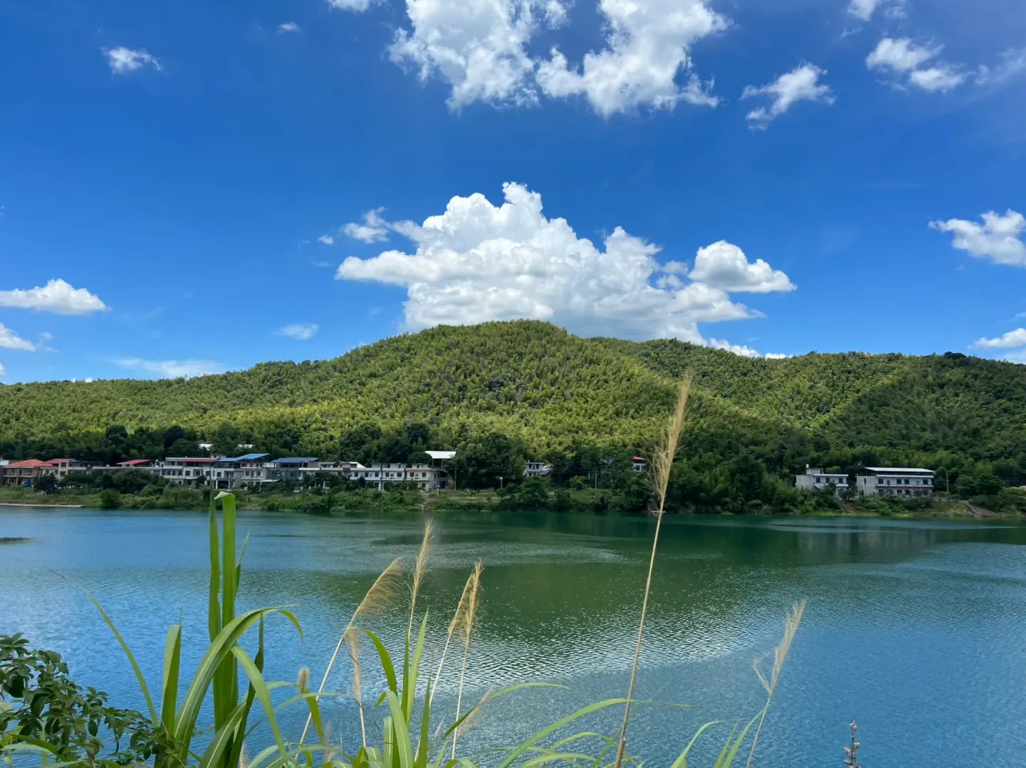 远山如黛,青山碧流,烟波浩渺,碧波如镜